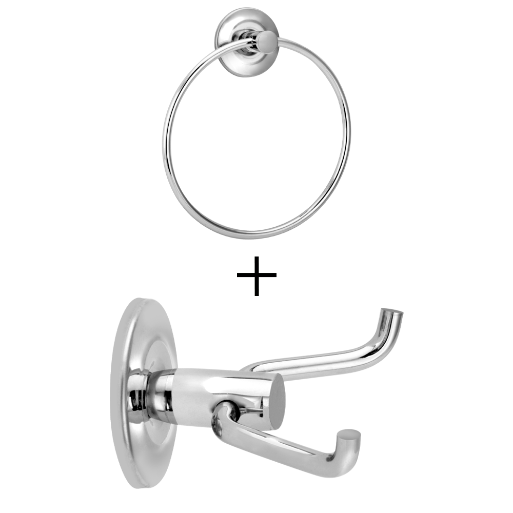 KIT GANCHO CABIDEIRO DUPLO + PORTA TOALHA ARGOLA