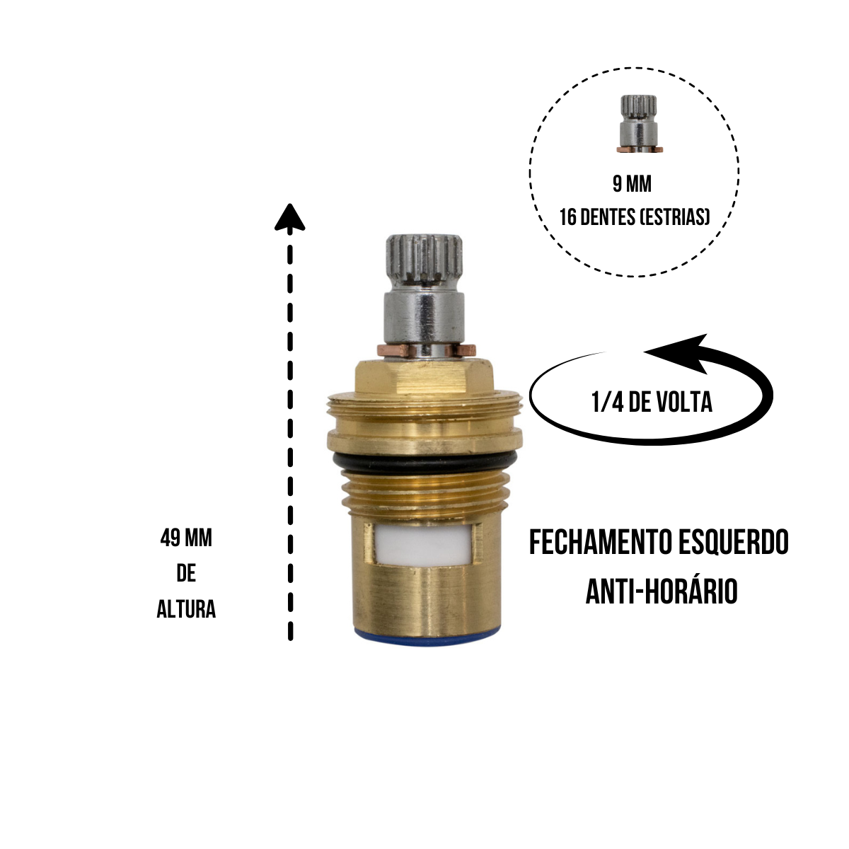 CONTEÚDO DA EMBALAGEM: 1 REPARO 1/4 VOLTA TORNEIRA PADRÃO DECA AZUL DIREITO.