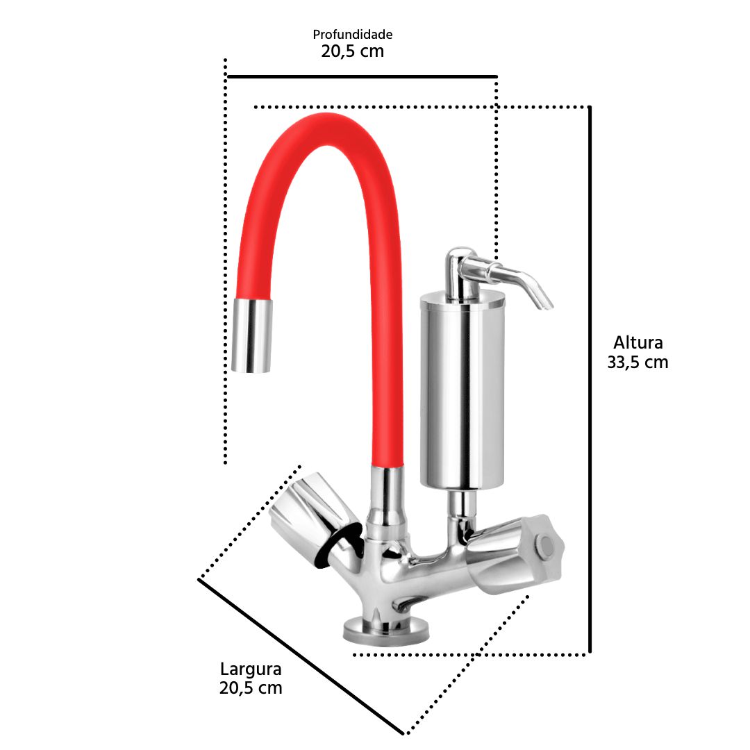 TORNEIRA GOURMET COLORS VERMELHA FILTRO COZINHA MESA C50